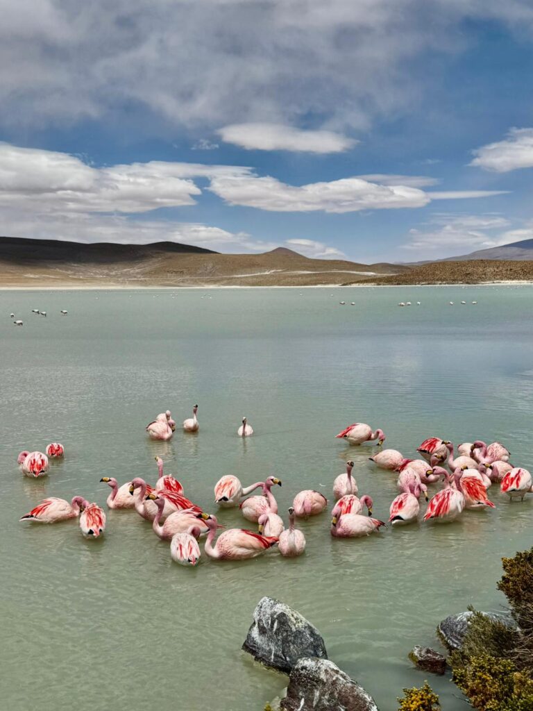 Ziua 16: Astăzi traversăm Cordiliera Anzilor – o zi plină de peisaje spectaculoase, cu opriri la lagunele Verde, Blanca și Colorada, la deșertul Dali și la faimosul Arbore de Piatră si la Geiserele Sol de la Manana. Priveliștile de aici sunt probabil printre cele mai impresionante de pe planetă, iar natura se arată în cea mai pură și excepțională formă. Seara înnoptăm la un refugiu în apropiere de Laguna Colorada, în camere de 6 persoane cu grup sanitar comun. Seara înnoptăm la un hostel, în camere de 4 persoane cu grup sanitar comun. Cine doreste poate merge la apele termale de langa hostel.